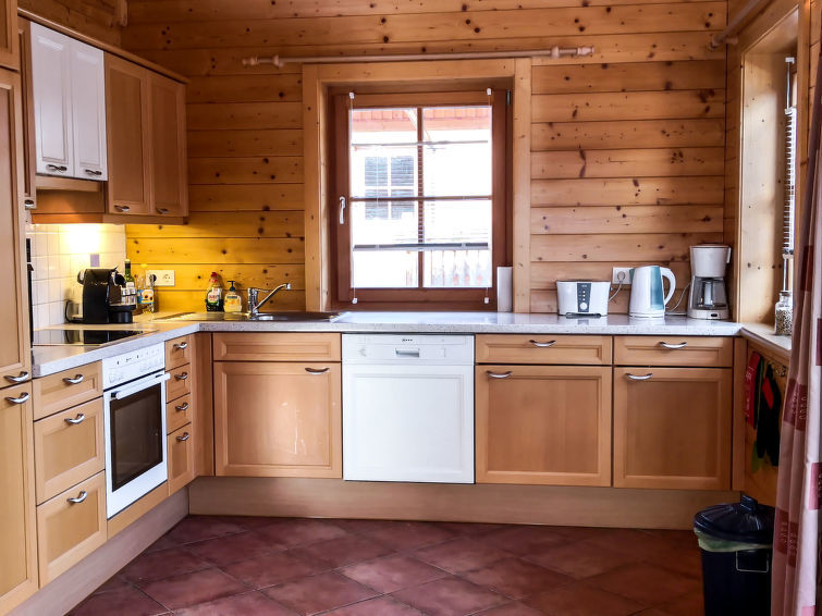 "Chalet Jupiter", chalet 4 pièces 100 m2 sur 2 niveaux. Logement idéal pour 6 adultes. Aménagement de bon goût et avec beaucoup de bois: séjour/salle à manger avec coin repas et Télévision numérique. Sortie sur le balcon. 2 chambres doubles. Cuisine ouverte (four, lave-vaisselle, 4 plaques vitrocéramiques, bouilloire électrique, micro-ondes, cafetière électrique, Capsules pour machine à café (Nespresso) (NON INCLUSES)). WC séparé. À l'étage inférieur: entrée. 1 chambre double. Douche/WC, double vasque. Chauffage par le sol. Sol en bois. Grand balcon, terrasse partiellement couverte. Mobilier de balcon. Très belle vue sur les montagnes et les alentours. A disposition: chaise haute pour enfant, lit bébé jusqu'à 2 ans. Internet (Connexion WIFI, gratuit). Place de parking (couvert, 2 Voitures). Veuillez noter: logement non-fumeur. 2 animaux/chiens de petite taille autorisés. Détecteur de fumée. Vous pourrez profiter d'une TV AmazonFireTV et de Netflix dans la maison. La cuisine est équipé d'une machine Nespresso, d'un toaster et d'une bouilloire.
