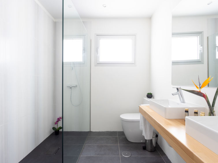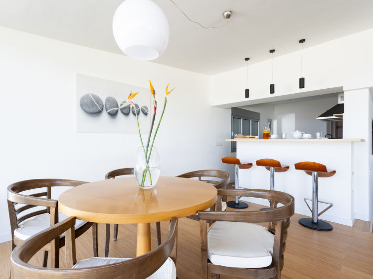 Villa 4 pièces 125 m2. Spacieux et clair, aménagement confortable et de bon goût: entrée. Grand séjour/salle à manger ouvert avec table pour les repas et Télévision numérique. Sortie sur le jardin, sur la terrasse. 1 chambre avec 1 lit double (180 cm, longueur 200 cm). 1 chambre (200 cm, longueur 200 cm). 1 chambre avec 1 lit (140 cm, longueur 200 cm). Cuisine ouverte (four, lave-vaisselle, 4 plaques vitrocéramiques, grille-pain, bouilloire électrique, micro-ondes, cafetière électrique). 2 douches/WC, double vasque. Pas de chauffage. Meubles de terrasse, mobilier de balcon, chaises longues. Vue sur la mer et les alentours. A disposition: coffre-fort, fer à repasser, chaise haute pour enfant, lit bébé, sèche-cheveux. Internet (Connexion WIFI). Veuillez noter: maison non-fumeur. Extincteur, sans ascenseur. CTIC / 69453 / 2020 // Reg. Nr.: ESFCTU00003801000012998700000000000000000000000000008