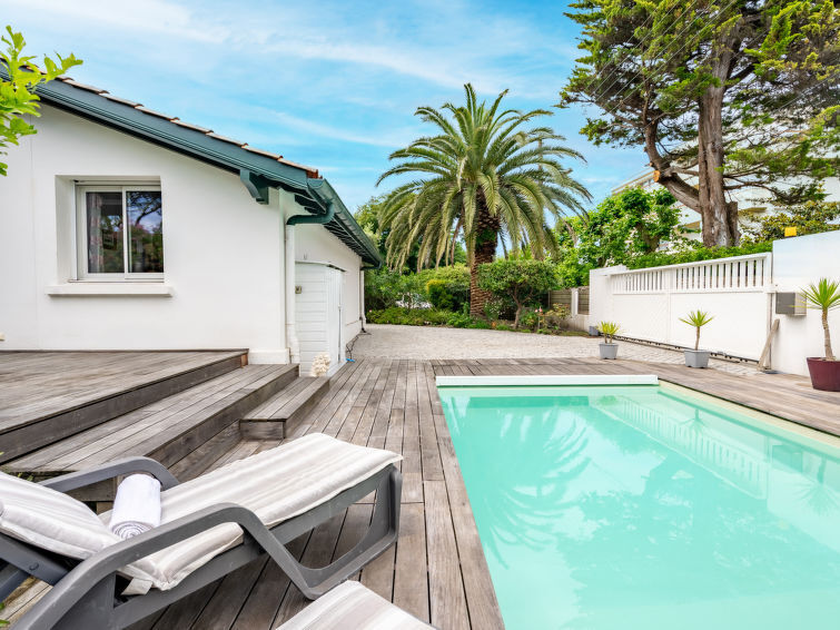 Anglet 2 km van Biarritz: Villa "Liserons". Golf du Phare, rustige ligging, 1.6 km van zee, 1.6 km van het strand. Voor alleengebruik: terrein 460 m2, tuin gazon en planten, openluchtzwembad verwarmd (3 x 5 m, seizoensgebonden beschikbaarheid: 01.Jun. - 30.Sep.) met oprolbaar afdekscherm. Parkeerplaats (voor 2 auto's) op het terrein. Winkel, levensmiddelenwinkel 600 m, restaurant 500 m, bushalte "Larochefoucault" 700 m, zandstrand "Le Miramar" 1.6 km, thermaalbad "Athlantal" 4.6 km. Golfterrein (18 holes) 800 m, surfschool 1.6 km, tennis 1.2 km, manege 12.9 km. Attracties in de buurt: Golf du Phare 800 m, Halles des 5 Cantons 1.3 km, Phare de biarritz 1.9 km, Aquarium 3 km, Bayonne 6.2 km, Saint-Jean-de-Luz 17 km. Wandelgebied Le Sentier du Littoral 800 m, La Rhune 28 km.