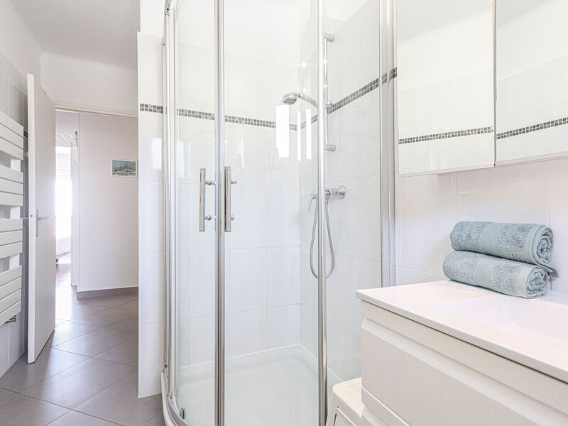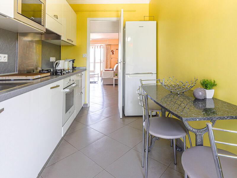Appartement 3-kamers 65 m2 op de 4e verdieping, op het westen gelegen. Licht, comfortabel ingericht: woon-/eetkamer 20 m2 met TV (Flatscreen TV). Uitgang naar het terras. 1 kamer 18 m2 met 1 2-pers bed (160 cm, lengte 200 cm), air-conditioning. Uitgang naar het terras. 1 kamer 12 m2, venster naar het binnenplaats met 2 bedden (90 cm, lengte 190 cm). Keuken (4-pits kookplaat, oven, afwasmachine, magnetron, elektrische koffiemachine). Uitgang naar het balkon. Badkamer, aparte WC. Verwarming. Terras 10 m2, overdekt. Terrasmeubelen. Uitzicht in de verte op zee en de plaats. Ter beschikking: wasmachine, haardroger. Internet (WiFi, gratis). 1 klein huisdier/hond toegestaan. Rookmelders. Aanbod door een particulier volgens art. 155, IV van CGI. 061040009633O