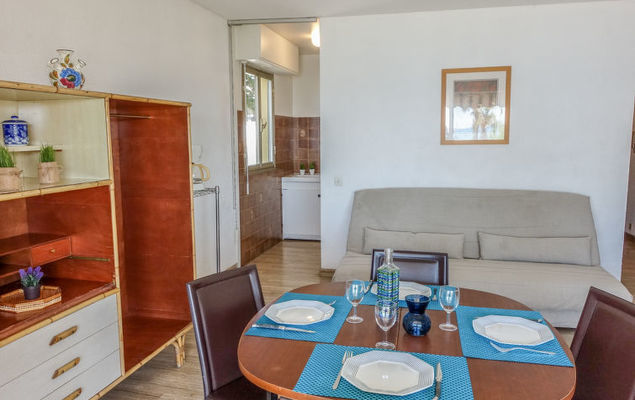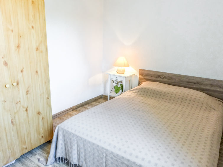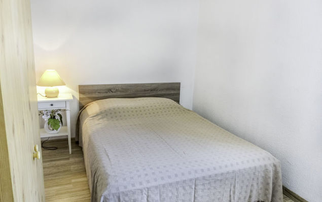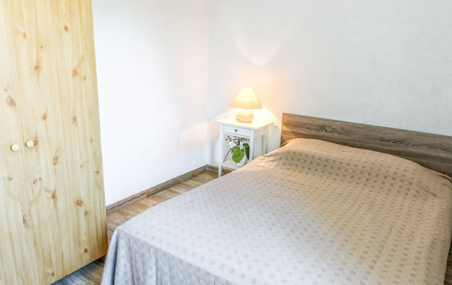 Appartement 2-kamers 50 m2 op de 1e verdieping. Eenvoudig ingericht: woon-/eetkamer met 1 2-pers divanbed (140 cm, lengte 190 cm), TV. Uitgang naar het terras. 1 kamer met 1 2-pers bed (1 x 140 cm, lengte 190 cm). Keuken (4-pits kookplaat, oven, broodrooster, waterkoker, magnetron, elektrische koffiemachine). Bad/bidet/WC. Gas-verwarming. Balkon 10 m2. Terrasmeubelen. Mooi uitzicht op zee. Ter beschikking: wasmachine. Internet (Internet (WiFi), extra). Parkeerplaats nr. 24 (omheind). Let op: niet rokers woning. Maximaal 1 huisdier/hond toegestaan. 06123010944AK
