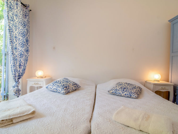 "L'Agapanthe", huis 4-kamers 85 m2. Eenvoudig ingericht: woon-/eetkamer met open haard, eettafel en TV (Flatscreen TV). Uitgang naar de tuin, naar het terras. 1 kamer met 2 bedden (90 cm, lengte 190 cm). 1 kamer met 2 bedden (80 cm, lengte 190 cm). 1 kamer met 2 bedden (90 cm, lengte 190 cm), douche/WC. Uitgang naar de tuin. Keuken (4-pits kookplaat, oven, afwasmachine, broodrooster, magnetron, elektrische koffiemachine) met eethoek. Uitgang naar het terras. Badkamer, aparte WC. Elektrische verwarming. 2 terrassen. Terrasmeubelen, barbecue, ligstoelen (6). Ter beschikking: wasmachine, strijkijzer. Internet (Internet (WiFi), gratis). Eén tweepersoonskamer is buiten het appartement. Rookvrij huis. Maximaal 1 huisdier/hond toegestaan. Rookmelders. Aanbod door een particulier volgens art. 155, IV van CGI.