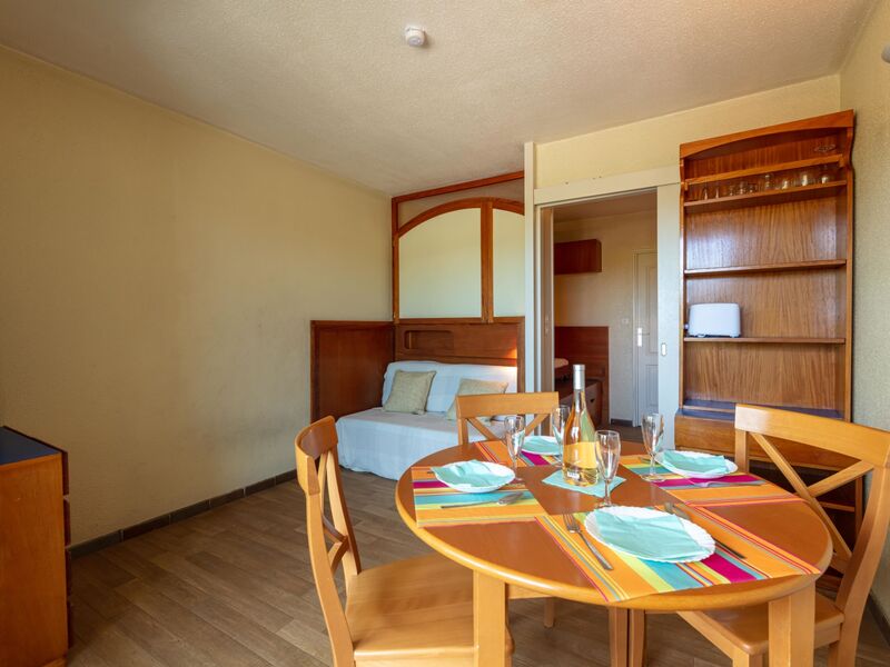 Studio 1-kamer 23 m2 op de 3e verdieping. Licht, comfortabel ingericht: woon-/eetkamer met 1 2-pers divanbed (140 cm, lengte 190 cm), eettafel en TV (Flatscreen TV). Uitgang naar het terras. Cabine met gordijn met 1 uitschuifbaar bed (2 pers. 2 x 80 cm, lengte 190 cm). Keuken in de hal (afwasmachine, 2 keramische glas kookplaten, broodrooster, waterkoker, magnetron, elektrische koffiemachine). Bad/WC. Elektrische verwarming, air-conditioning. Terras 6 m2. Terrasmeubelen. Mooi uitzicht op het landschap. Ter beschikking: wasmachine. Internet (Internet (WiFi), extra). Parkeerplaats nr. 2 sous-sol. Koelkast zonder vriesvak, parkeerplaats alleen voor een kleine auto. 1 klein huisdier/hond toegestaan. TV alleen FR. Rookmelders. In plaats van een afgesloten slaapkamer bevinden sommige slaapgedeeltes zich in een open ruimte (galerij, nis, etc.). Aanbod door een commerciële eigenaar volgens art. 155, IV, CGI