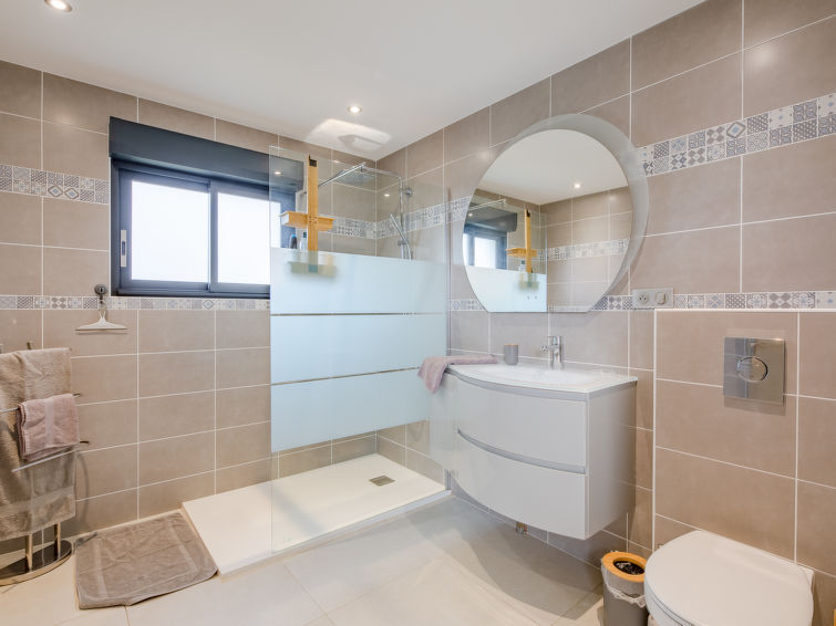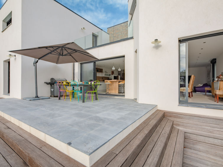 "Les Girelles", villa 6-kamers 230 m2 op 2 verdiepingen. Ruim, zeer modern en stijlvol ingericht: groot woon-/eetkamer met Digitale TV, Flatscreen TV en air-conditioning. Uitgang naar het terras. 1 kamer met 1 2-pers bed (160 cm, lengte 200 cm), douche/WC en air-conditioning. Uitgang naar het terras. 1 kamer met 2 bedden (80 cm, lengte 200 cm), air-conditioning. Uitgang naar de tuin. Open keuken (oven, afwasmachine, 4 inductiekookplaten, broodrooster, diepvriezer, elektrische koffiemachine, kookeiland). Uitgang naar het terras. Aparte WC. Bovenverdieping: 1 kamer met 1 2-pers bed (160 cm, lengte 200 cm), air-conditioning. 1 kamer met 1 2-pers bed (160 cm, lengte 200 cm), air-conditioning. Uitgang naar het balkon. 1 kamer met 1 2-pers bed (160 cm, lengte 200 cm), bad/douche/WC, dubbele wastafels en air-conditioning. Uitgang naar het balkon. Douche/WC. Elektrische verwarming, air-conditioning. Groot balkon 20 m2, op het zuiden gelegen, groot terras 30 m2 gedeeltelijk overdekt, op het zuiden gelegen. Panoramazicht op zee. Ter beschikking: wasmachine. Internet (Internet (WiFi), gratis). Rookvrij huis. Rookmelders. Aanbod door een commerciële eigenaar volgens art. 155, IV, CGI 83107001116R1