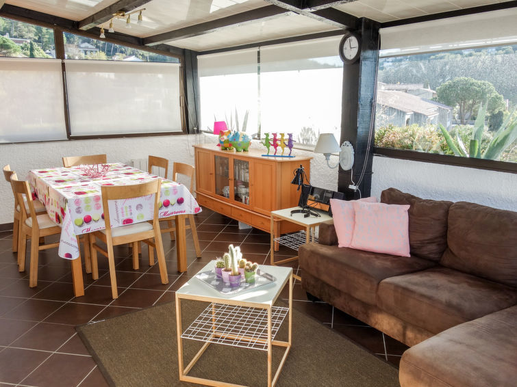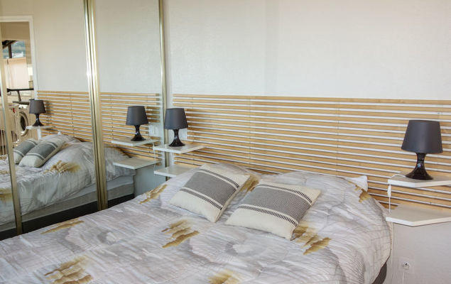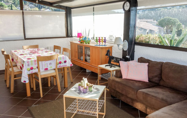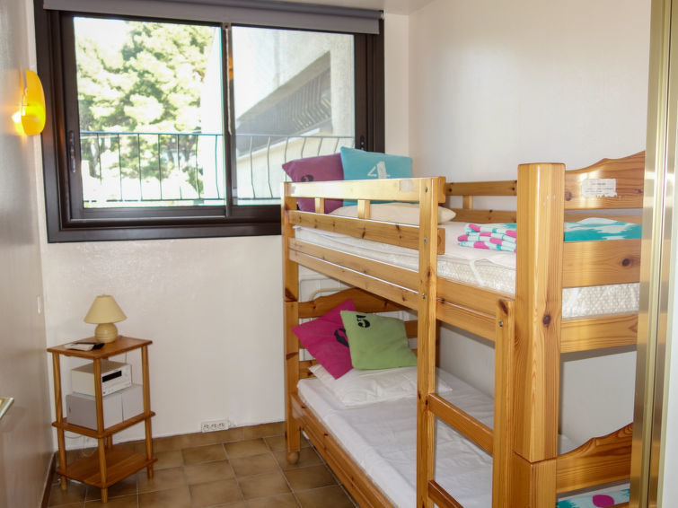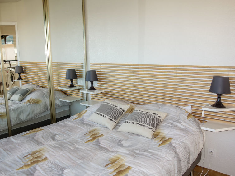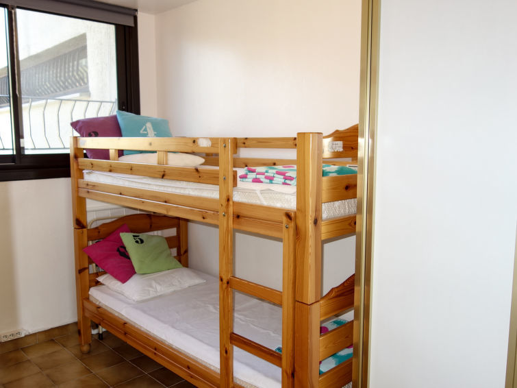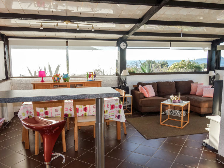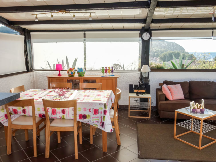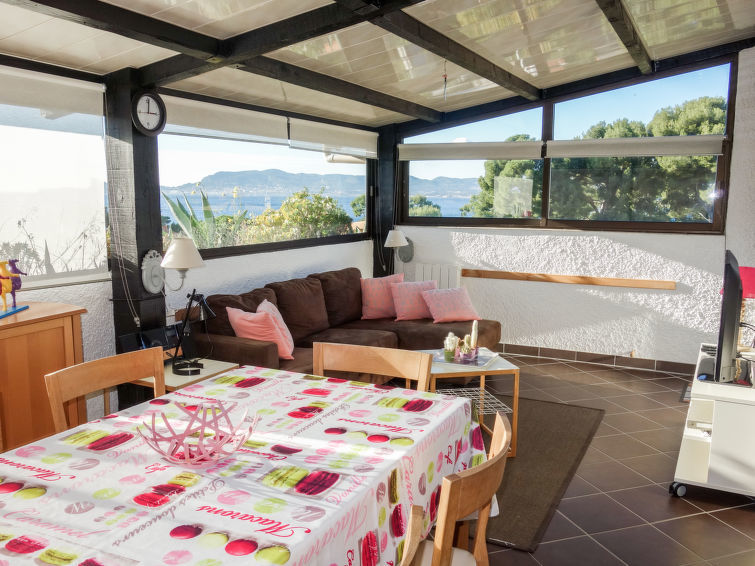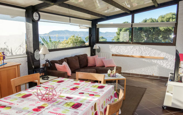 Appartement 3-kamers 60 m2 op de 1e verdieping. Licht, volledig gerenoveerd in 2014, mooi en modern ingericht: woon-/eetkamer met TV (Flatscreen TV), stereo-installatie, DVD en air-conditioning. Uitgang naar het terras. 1 kamer met 1 2-pers bed (140 cm, lengte 200 cm), stereo-installatie. 1 kamer met 1 x 2 stapelbedden (80 cm, lengte 190 cm), TV en stereo-installatie. Open keuken (4-pits kookplaat, afwasmachine, diepvriezer, elektrische koffiemachine, combimagnetron) met bar. Douche, aparte WC. Terras 12 m2, op het westen gelegen. Terrasmeubelen, elektrische barbecue. Zeer mooi panoramazicht op zee en het bos. Ter beschikking: wasmachine, kluis, strijkijzer, kinderbed tot 2 jaar. Internet (Internet (WiFi), gratis). Parkeerplaats. Let op: niet rokers woning. TV alleen FR. Rookmelders. Let op: De entree van het appartement bevindt zich op de begane grond, maar het appartement ligt op de 1e verdieping en is bereikbaar via een wenteltrap. Het balkon over de breedte ligt aan de zijkant van het appartement. Maten van de garage: breedte 4.80 m, diepte 2.30 m, hoogte 2.40 m. Borgsom: 380 Euro. 83112 000256 FO