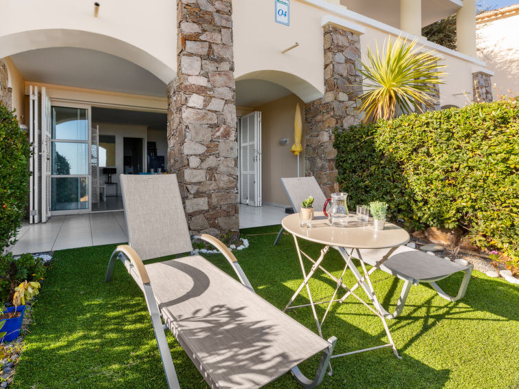 "Les Bastides (O4 023)", appartement 2-kamers 36 m2, op verhoogde begane grond. Mooi en gezellig ingericht: woon-/slaapkamer met 1 2-pers divanbed (140 cm, lengte 190 cm), TV (Flatscreen TV). Uitgang naar de tuin, naar het terras. 1 kamer met 1 2-pers bed (180 cm, lengte 200 cm). Uitgang naar de tuin. Open keuken (oven, 2 inductiekookplaten, broodrooster, magnetron, diepvriezer, elektrische koffiemachine). Douche/WC. Elektrische verwarming. Terras 8 m2, zithoek in de tuin. Terrasmeubelen, ligstoelen (2). Mooi uitzicht op zee. Ter beschikking: wasmachine, haardroger. Internet (Internet (WiFi), extra). Parkeerplaats (1 Auto) bij het huis. Niet rokers woning. 1 klein huisdier/hond toegestaan. Rookmelders. Aanbod door een particulier volgens art. 155, IV van CGI.