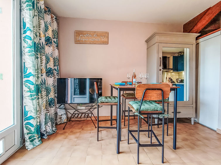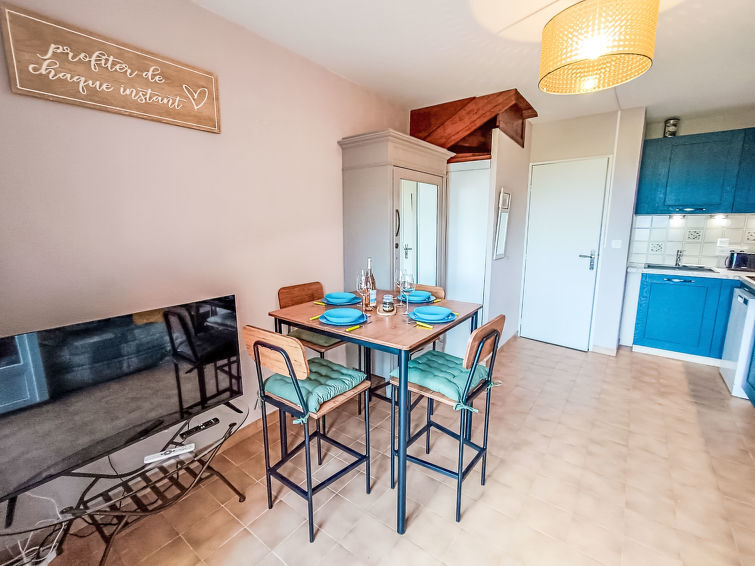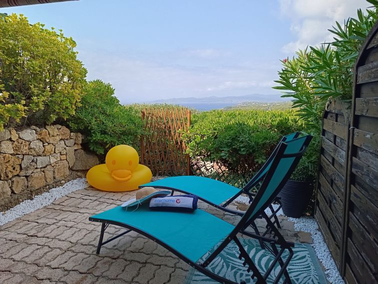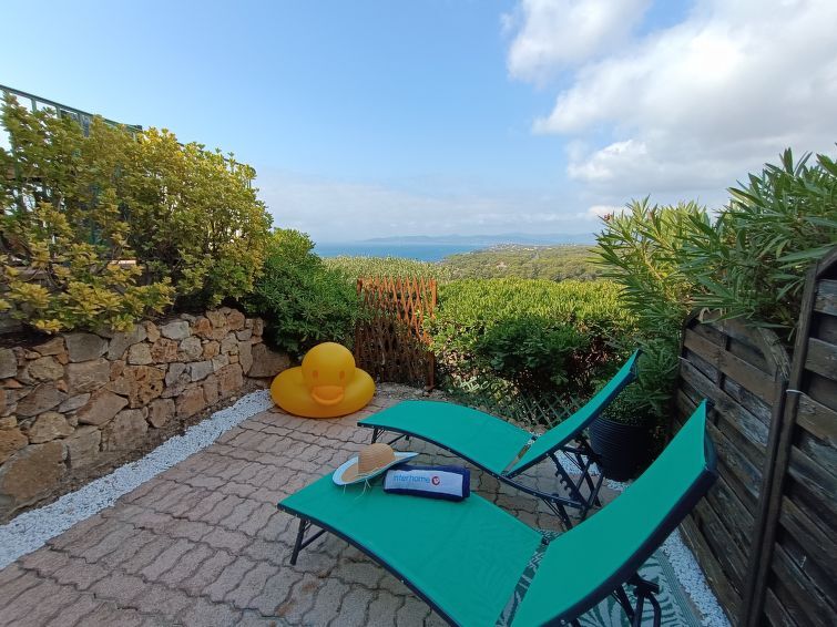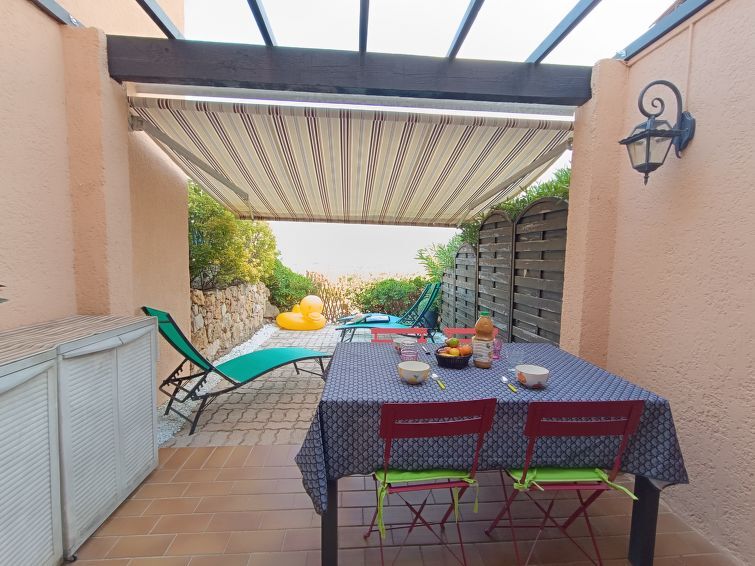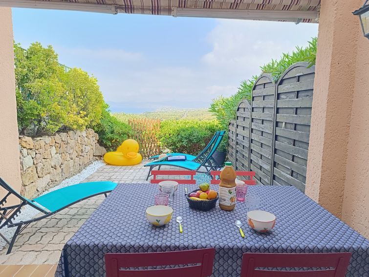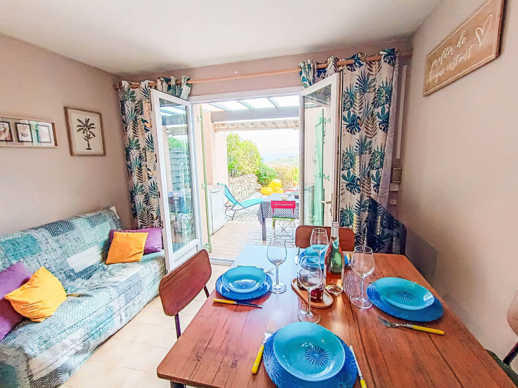 Huis in een rij 3-kamers 40 m2 op 2 verdiepingen. Woon-/eetkamer. Uitgang naar het terras, naar de zitplaats in de tuin. Kookhoek (oven, 4 inductiekookplaten, waterkoker, magnetron, diepvriezer, elektrische koffiemachine). Aparte WC. Bovenverdieping: 1 kamer met 1 2-pers bed (1 x 140 cm, lengte 190 cm), elektrische verwarming en air-conditioning. 1 kamer met 1 bed (140 cm, lengte 190 cm), elektrische verwarming en air-conditioning. Badkamer. Elektrische verwarming. Terras 12 m2 gedeeltelijk overdekt, op het zuiden gelegen en op het westen gelegen. Terrasmeubelen. Zeer mooi uitzicht op zee. Ter beschikking: haardroger. Internet (WiFi, gratis). Garage, hoogte 192 cm, breedte 235 cm. Rookvrij huis. TV alleen FR. Rookmelders. Aanbod door een particulier volgens art. 155, IV van CGI.