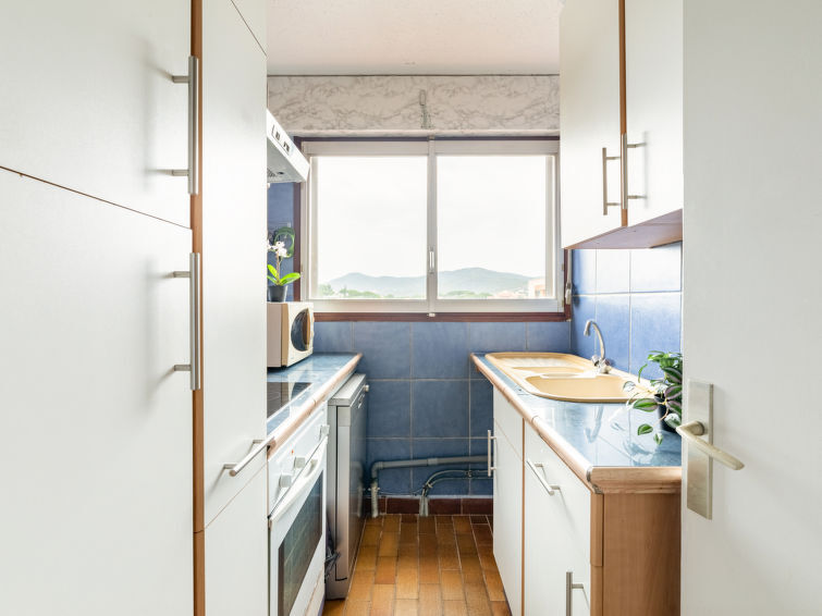 Appartement 2-kamers 50 m2 op de 4e verdieping, op het zuidoosten gelegen. Eenvoudig en rustiek ingericht: woon-/eetkamer met 1 2-pers kastbed (1 x 140 cm, lengte 190 cm), TV en air-conditioning. Uitgang naar het terras. 1 kamer met 1 bed (140 cm, lengte 190 cm). Kookhoek (afwasmachine, 1 keramische glas kookplaat, 4 kookpitten (vlammen), broodrooster, waterkoker, magnetron, diepvriezer, elektrische koffiemachine). Bad/WC. Elektrische verwarming. Terras 10 m2. Terrasmeubelen. Uitzicht op zee, het zwembad en de tuin. Ter beschikking: wasmachine. Internet (Internet (WiFi), gratis). Parkeerplaats. Niet rokers woning. 1 klein huisdier/hond toegestaan. Rookmelders. Aanbod door een particulier volgens art. 155, IV van CGI. 83115003222AK